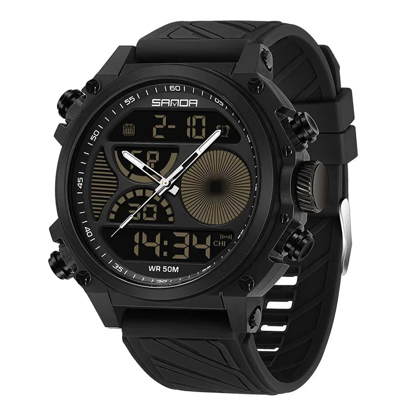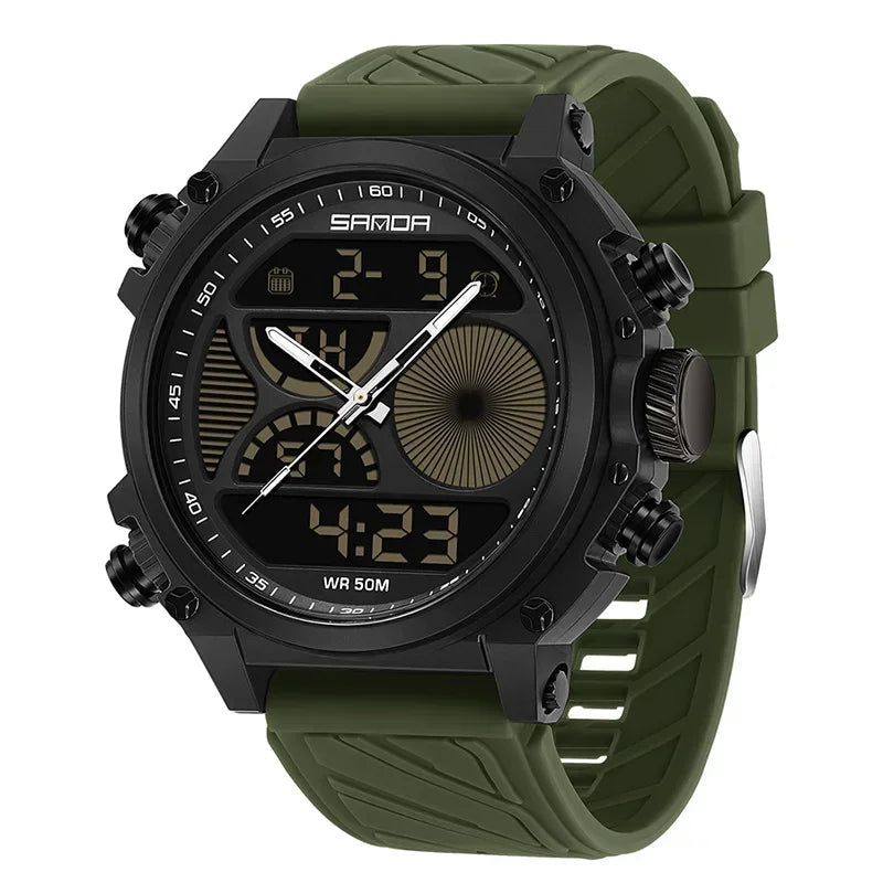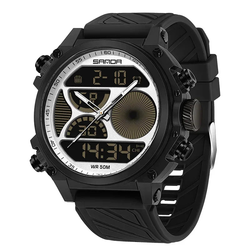 Material: Pulseira em silicone, visor em acrílico e caixa em plástico resistente