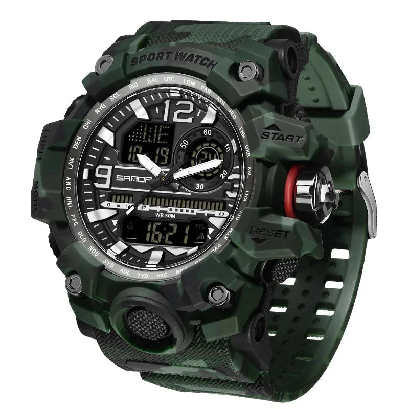 Material: Pulseira em borracha, visor em acrílico e caixa em plástico resistente