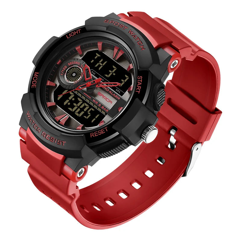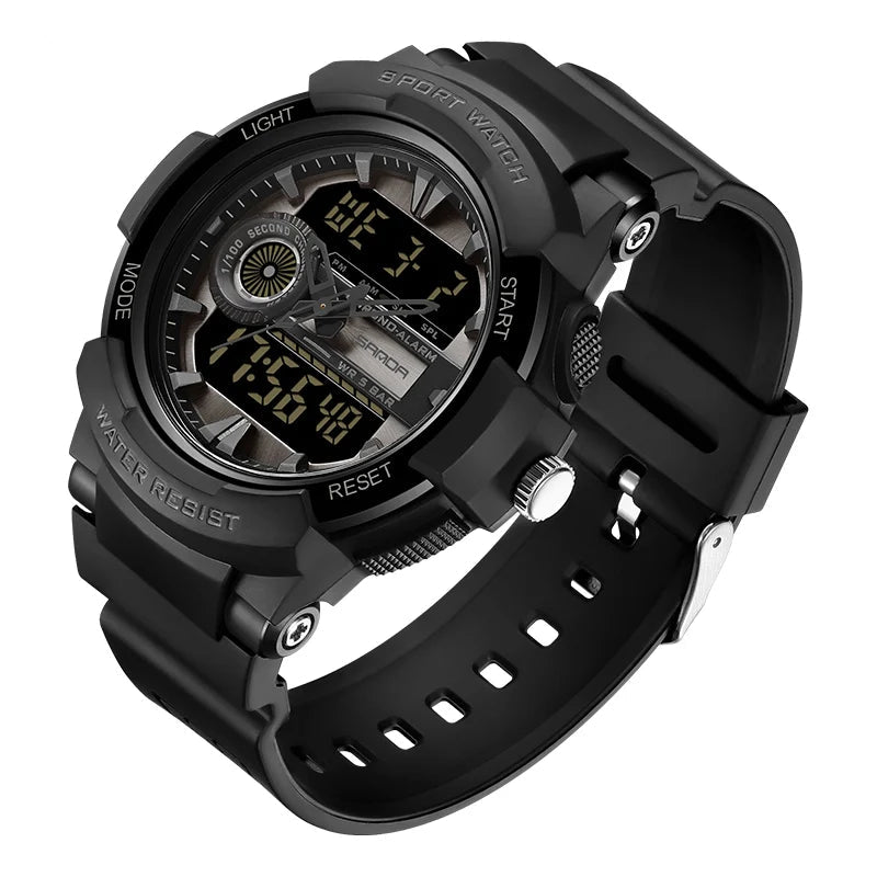 Material: Pulseira em PU, visor em Hardlex e caixa em plástico resistente